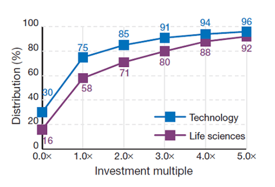 Life Sciences Had A Lower Loss Rate and Higher Frequency of 5x+ Returns